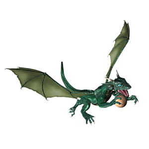Urzicke ist ein Drachenkind. Nun ist der richtige Moment, dem Kleinen Fliegen, Feuerspucken usw. beizubringen.Besitzer: